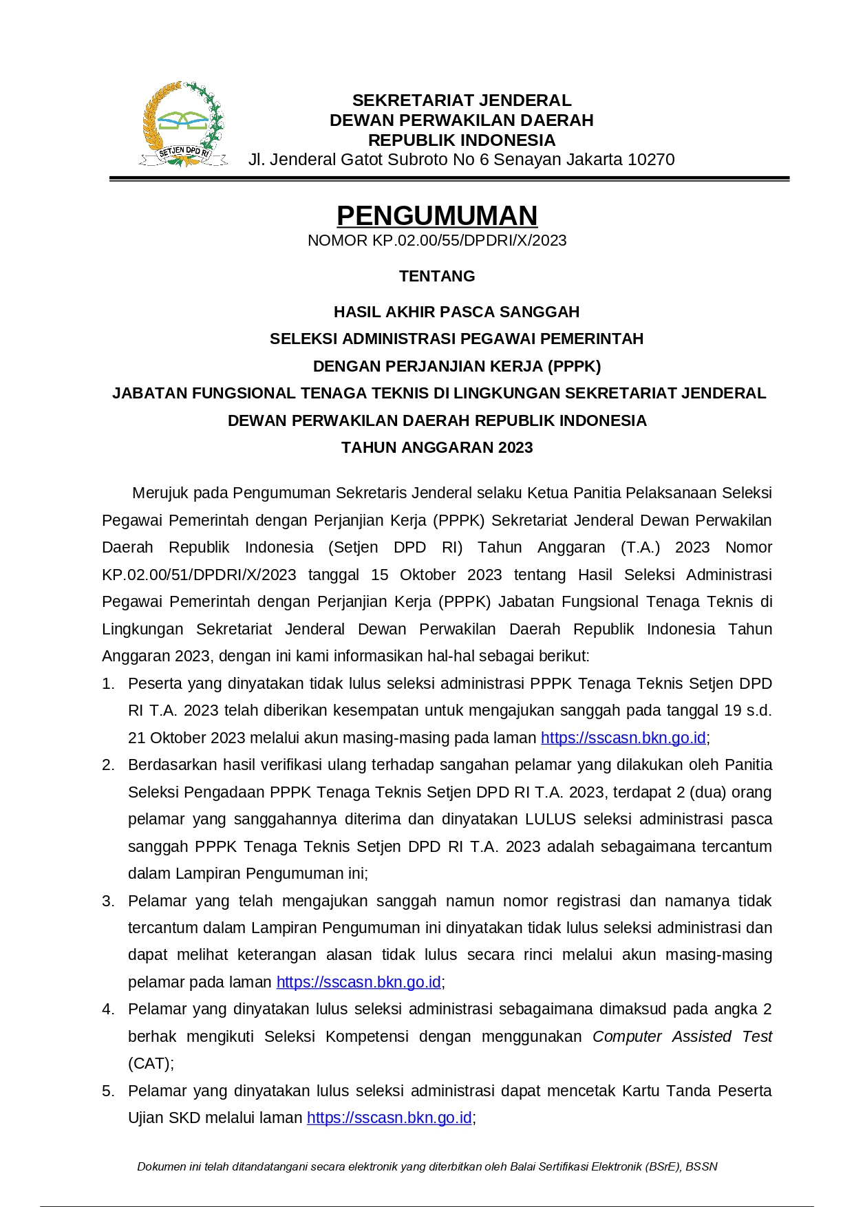 Unduh pengumuman lengkap pada lampiran